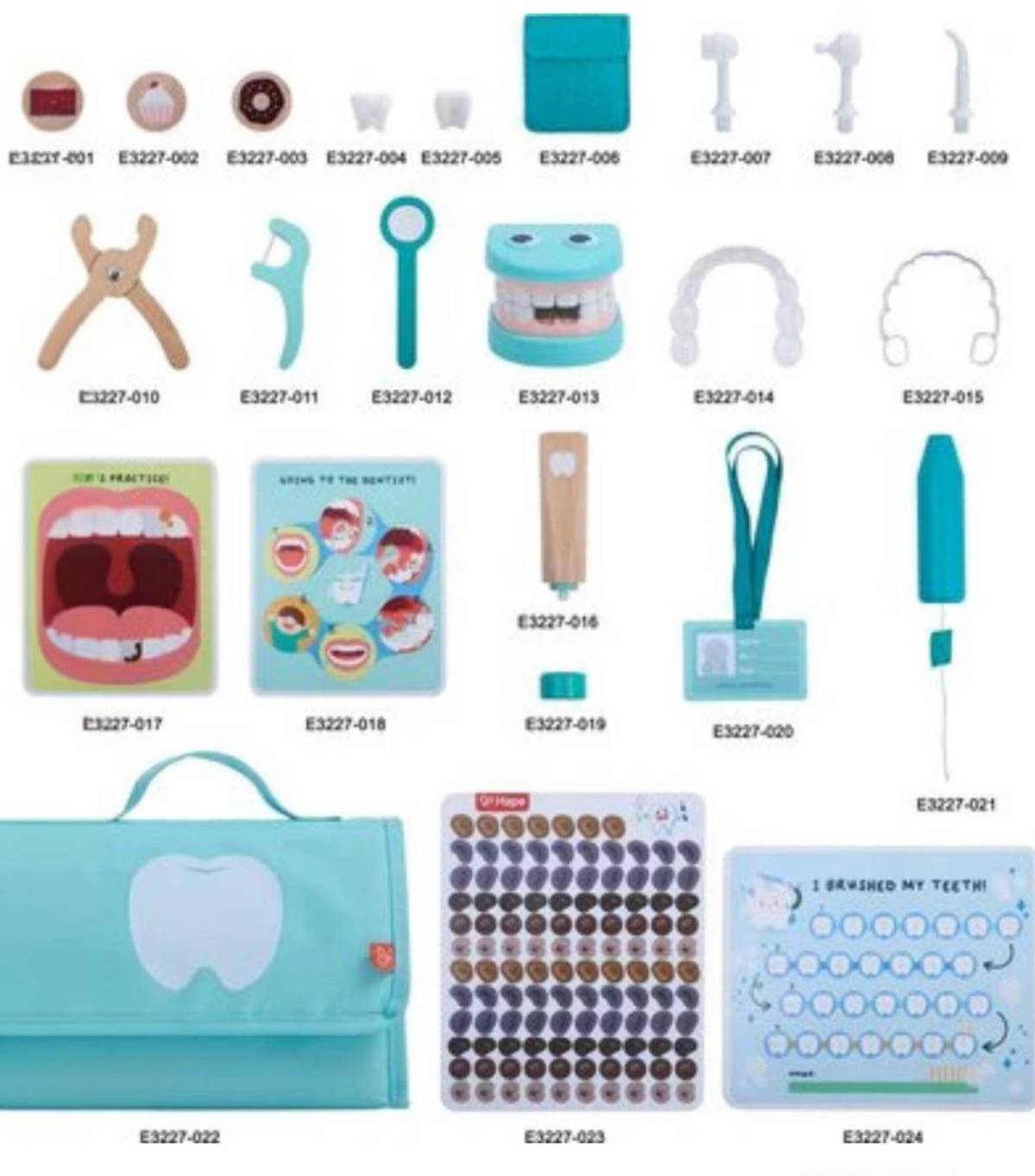 อุปกรณ์ตรวจฟันครบมากๆ เช่น โมเดลฟันจำลอง